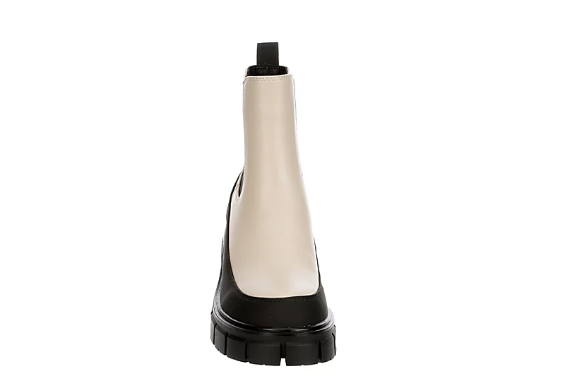 Ivory and ebony look so good together in the Limelight Reagan women’s Chelsea boot. With a faux leather upper featuring cool contrast for extra style, this pull-on boot also has elastic side panels and a rear pull tab. The padded footbed cushions every step while the chunky lug outsole offers deep traction.